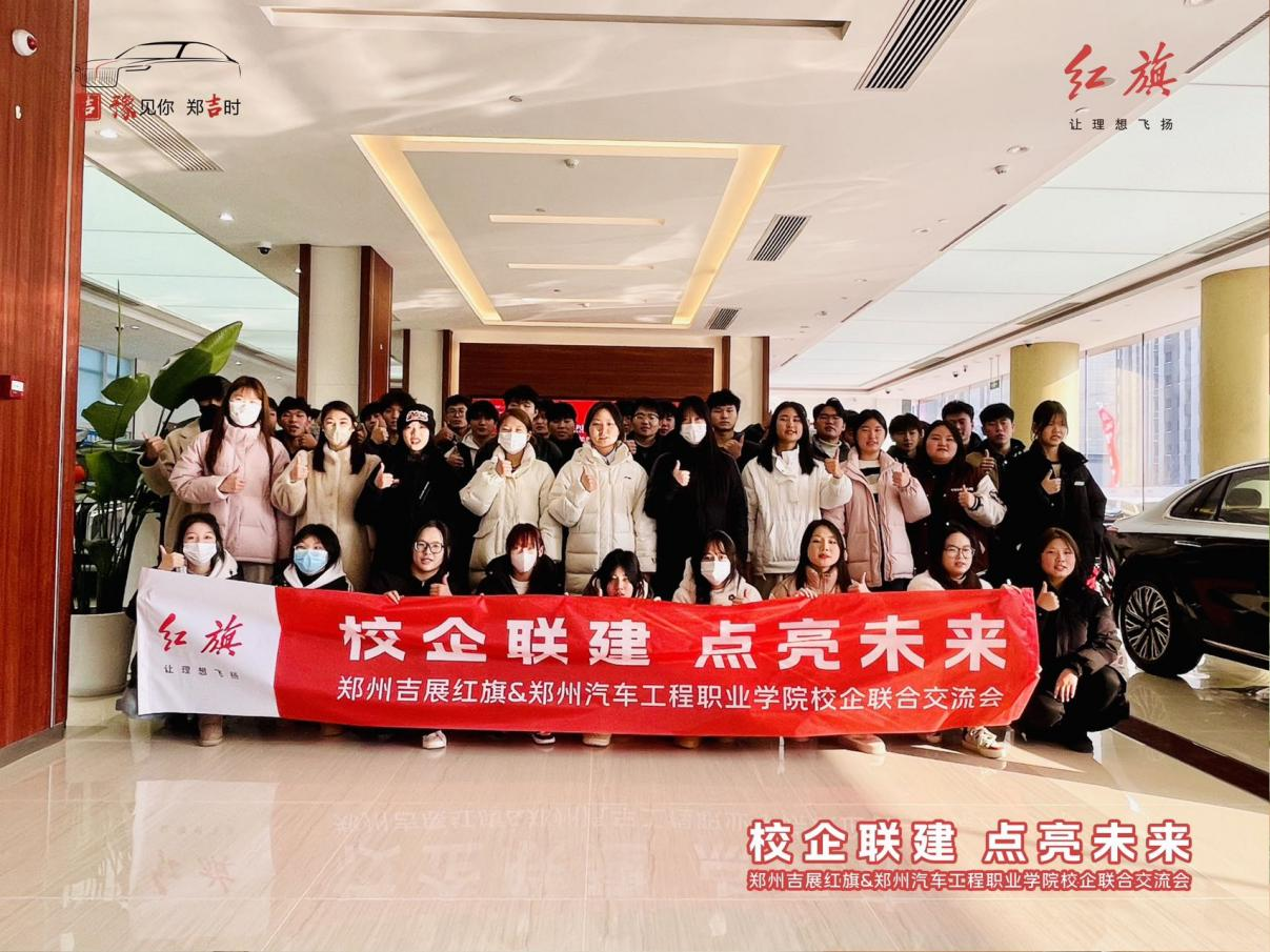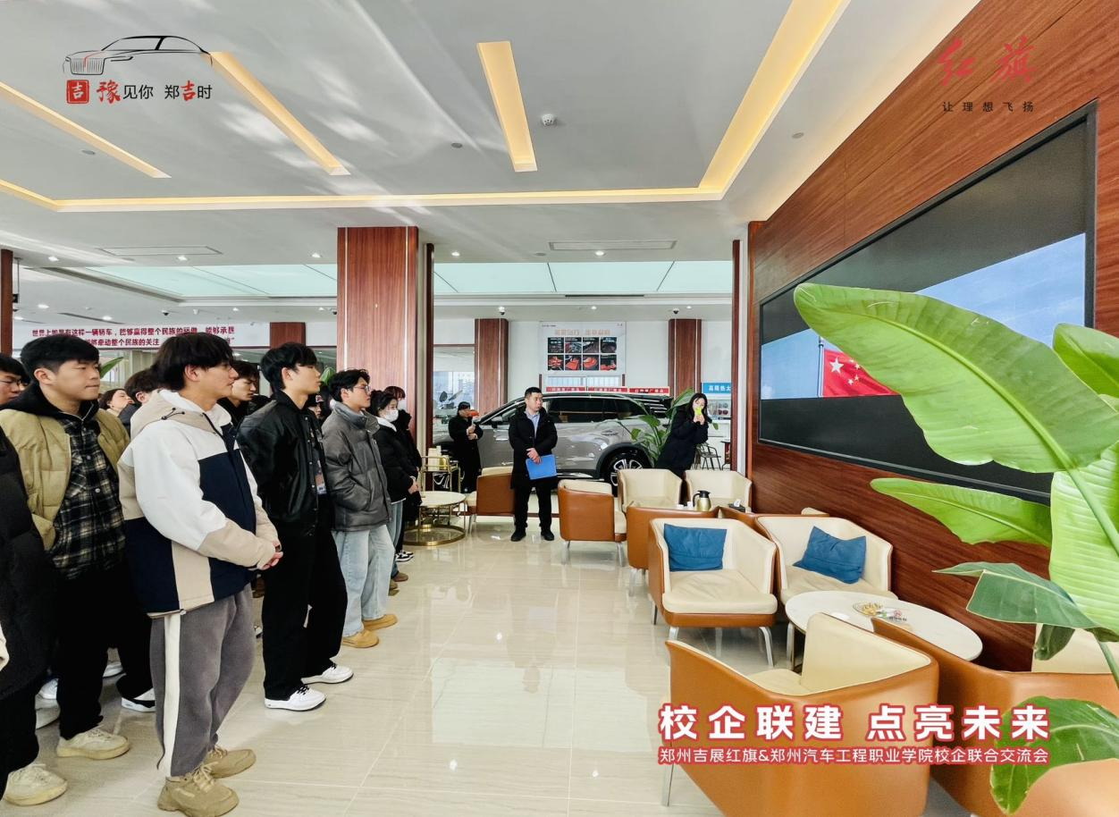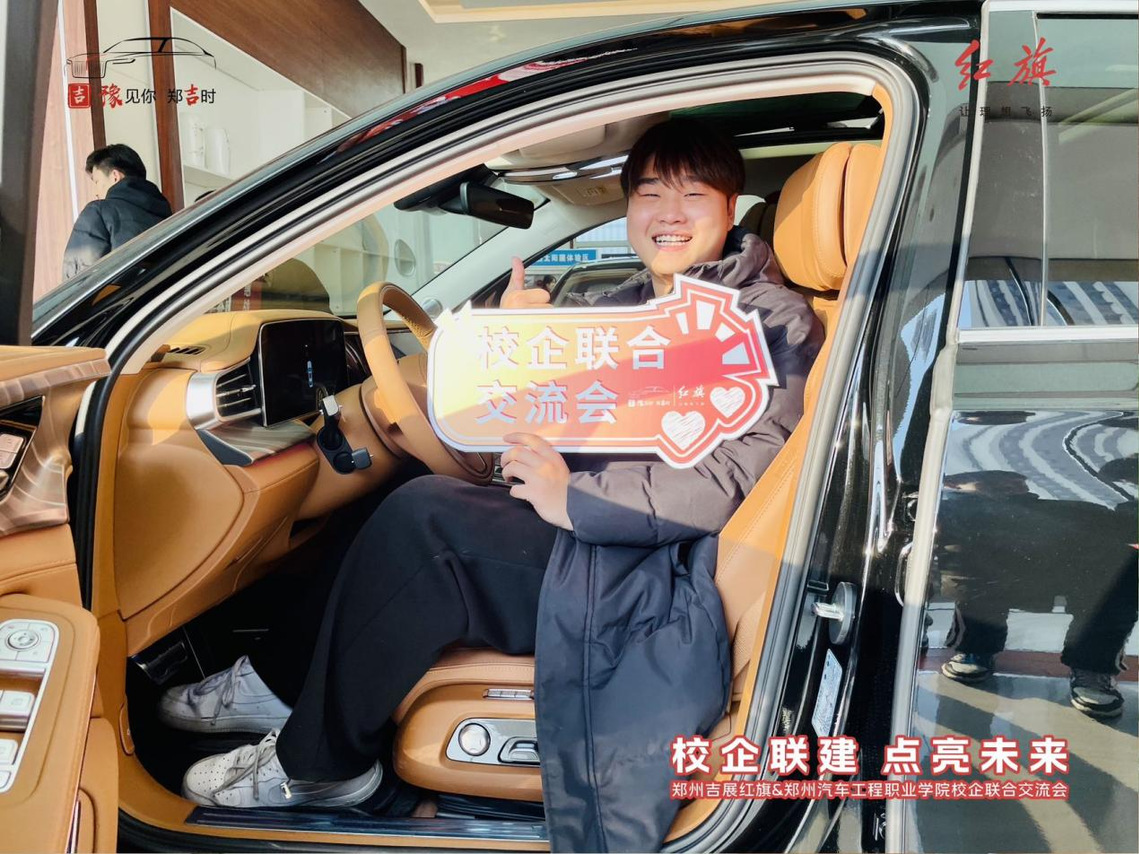 在郑州吉展红旗大厅,同学们观看了“一汽红旗”官方宣传片,了解我们国家建国以来的标志性事件和重大成就:新中国的第一台汽车制造、第一颗原子弹爆炸、第一次卫星发射、第一次申奥等等;让同学们深切感受到国产品牌的历史厚重。