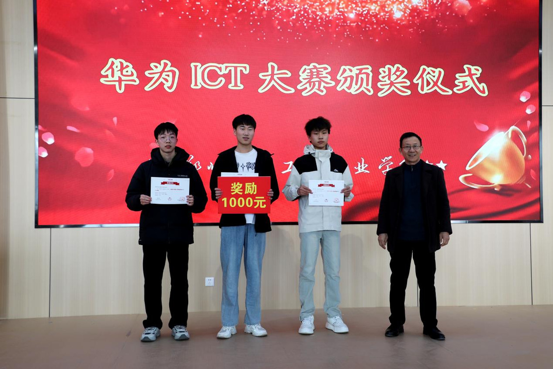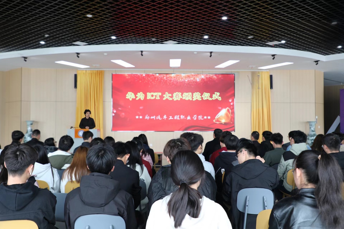 2023年11月,我校首次组织学生参加华为 ICT 大赛实践赛。43名学生参加省初赛,27名学生晋级省决赛,最终6名学生组成的两支参赛队,获得河南省二等奖与三等奖各一项。晋级决赛的其他19名学生获得优胜奖。王琦老师获得了大赛优秀指导教师奖。