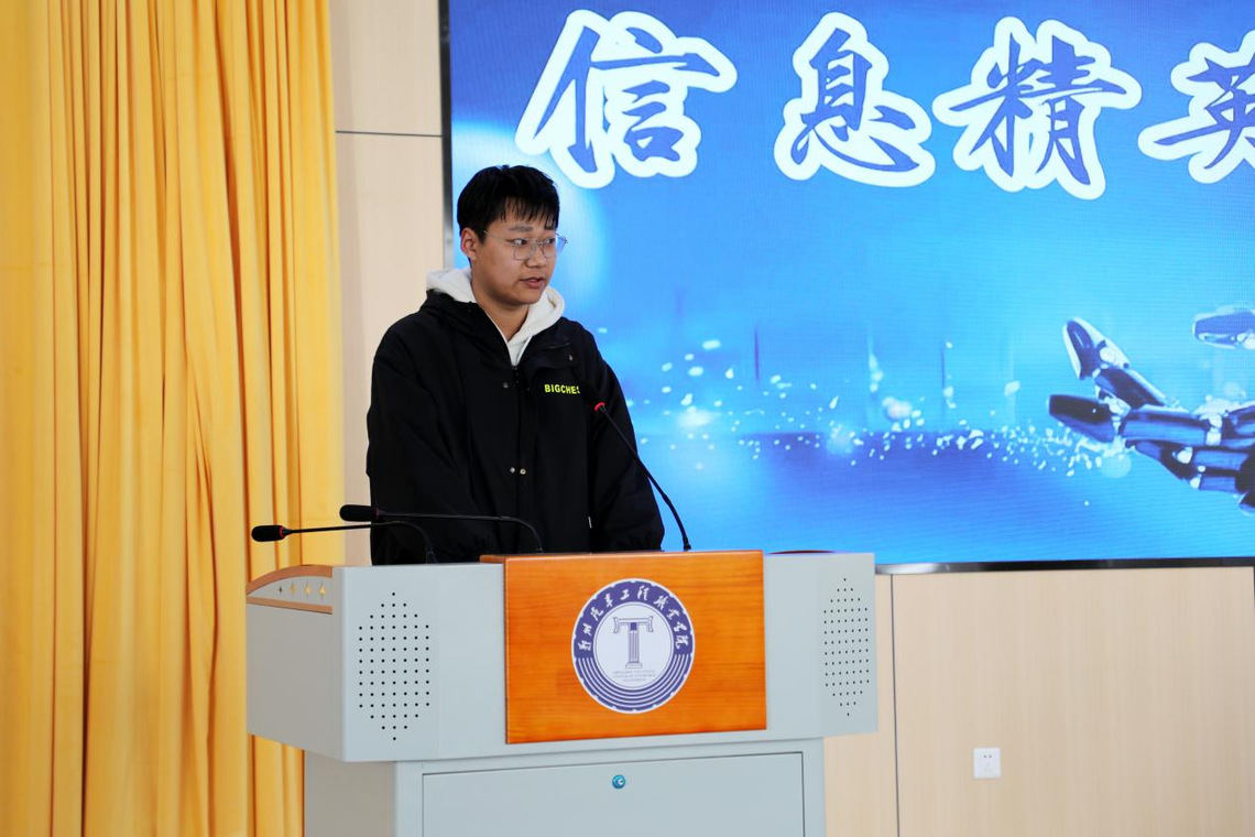 奖学金颁发仪式,简单而隆重,与会师生备受鼓舞。本次大赛,不仅锻炼了队伍、积累了经验,更为后续工作的开展打下良好的基础。颁奖仪式结束后,电子信息工程学院举行了“信息精英俱乐部”成立仪式。鼓励学子们比学赶帮、锐意进取、开拓创新、奋楫笃行,为学校争光!为青春喝彩!