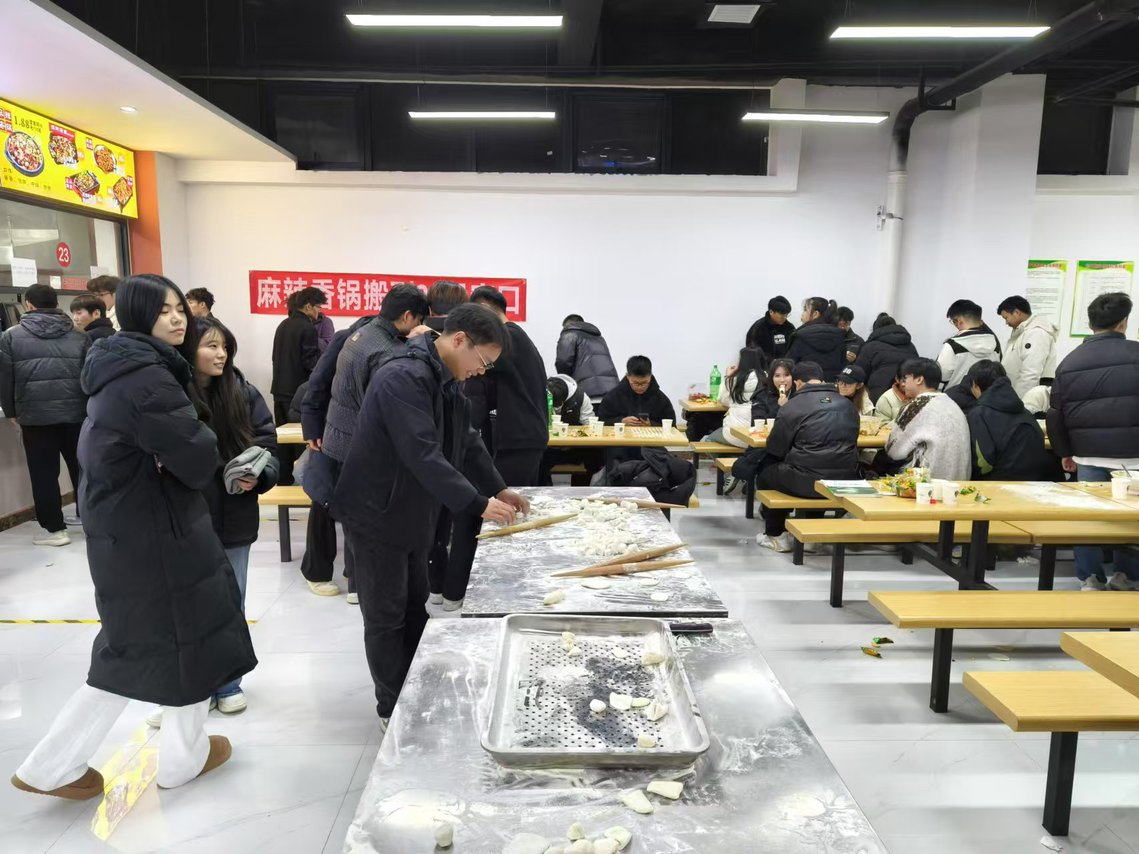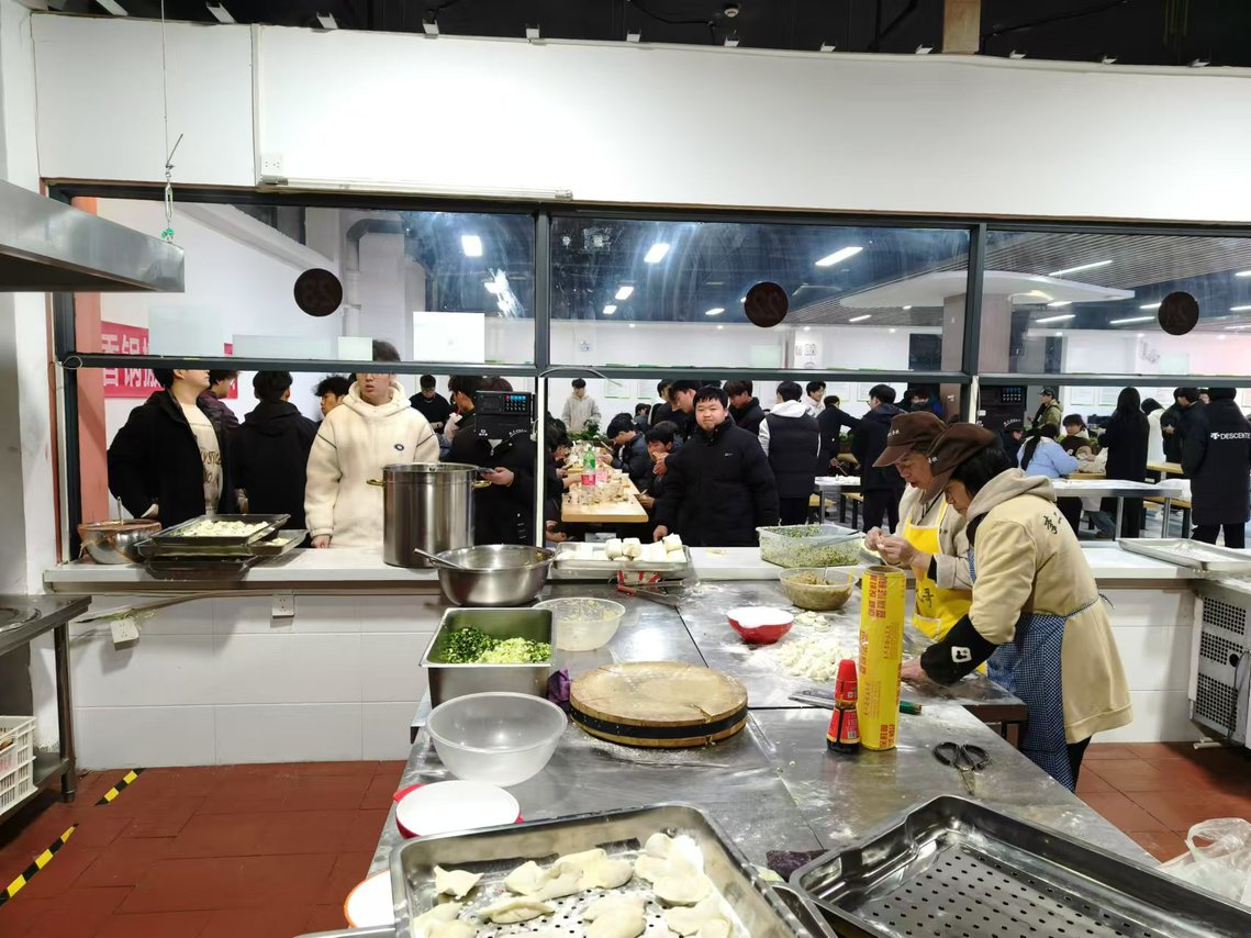 活动在知味苑一楼餐厅举行,得到了餐厅方面的大力支持与配合。餐厅工作人员提前准备好了新鲜的面粉和馅料,为大家提供了一个干净、整洁、充满节日气氛的活动场地。活动开始前,餐厅的厨师们还现场传授了包饺子的技巧,确保每位参与者都能亲手制作出美味的饺子。
