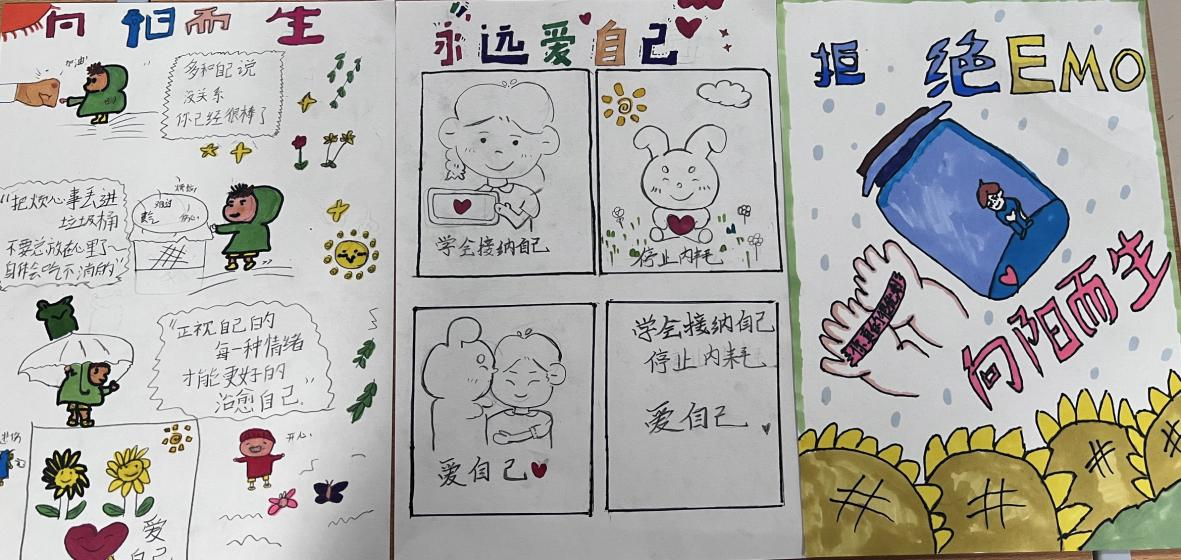 在绘心绘画的比赛中,看到了许多学生内心的想法,以及平时的“反差感”,有的同学就像在描绘内心的自己,把自己最真实的一面用绘画的形式表现出来,就比如当代大学生一些网络名词:“拒绝EMO”、“向阳而生”“独自走在下雨天”这些都能在本次“绘心绘画”漫画竞赛中体现了出来,本次活动才有了它真正的意义。