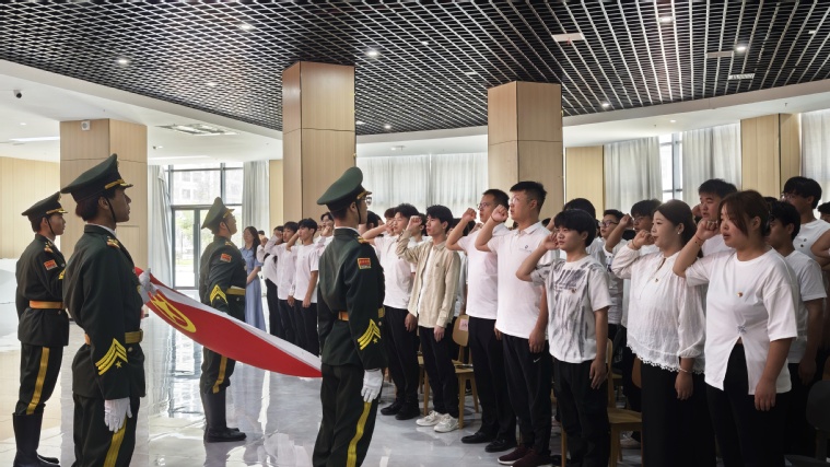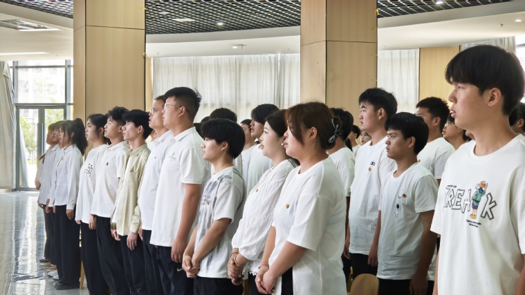 仪式在雄壮的国歌声中拉开帷幕,全体与会人员肃立齐唱国歌,嘹亮的歌声展现了新时代青年的昂扬斗志。