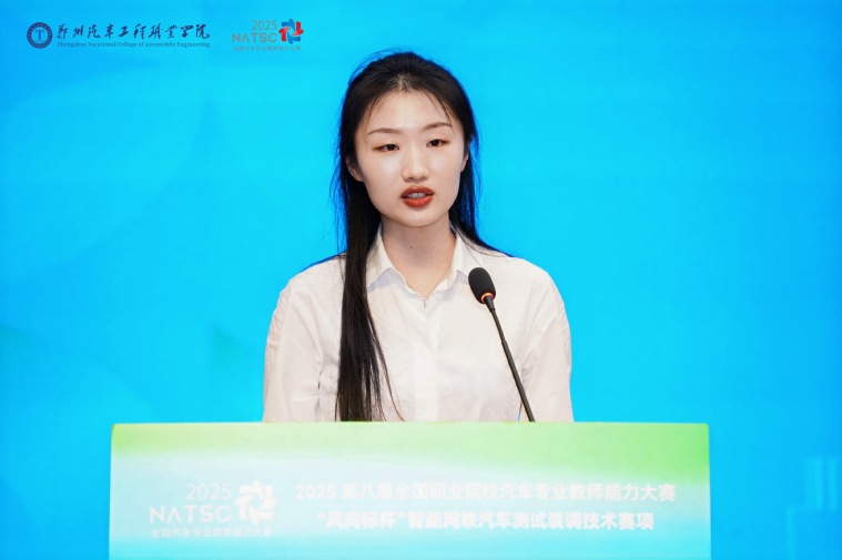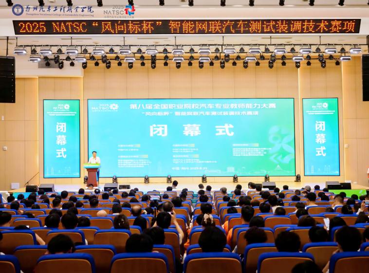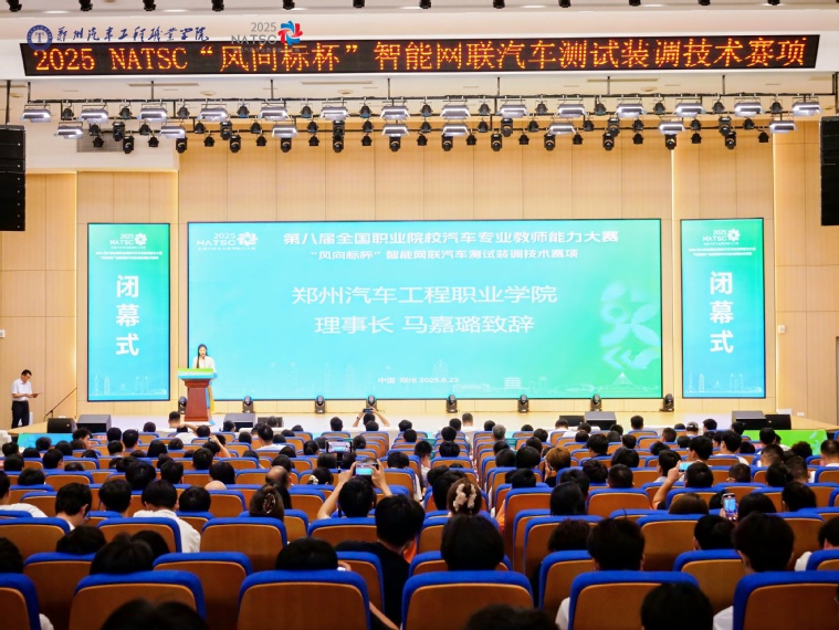 马嘉璐为闭幕式致辞,她表示,作为承办单位,我校紧密围绕汽车产业智能化、网联化转型需求,重点建设智能网联汽车、新能源汽车等特色专业群。此次大赛落户郑汽职院,既是对我校办学实力的认可,更是推动教育教学改革的强劲动力。我们深知,赛场中沉淀的技术标准、竞技经验,都是职业教育改革的宝贵财富。未来,我校将把大赛技术标准融入专业建设,实现产教精准对接;深化校企协同育人,共建技术研发与实训基地;构建“教学-竞赛-科研”一体化培养新模式。最后,她对各方支持表示感谢,并期待共同推动职业教育高质量发展。
