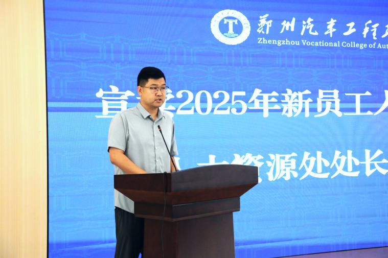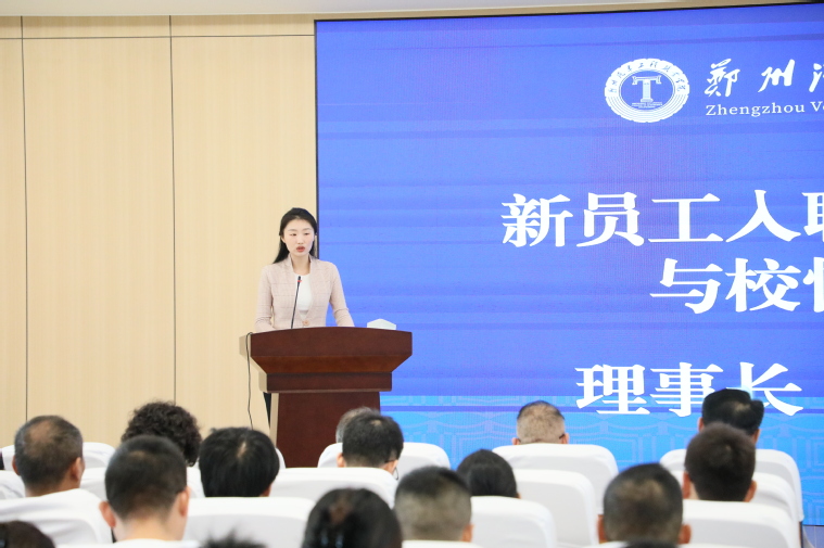 理事长马嘉璐女士代表学校对新教职工的加入表示热烈欢迎,并简要介绍了学校的发展历程、办学理念与未来规划。她强调,新教职工是学校发展的新生力量,希望大家通过培训迅速融入“郑汽大家庭”,持续提升专业能力,共同为学校高质量发展贡献力量。同时,她提出三点期望:一要调整心态、找准定位。坚定教育初心、明晰职业方向,自觉以优秀教师的标准审视自我、规划发展和锤炼能力,牢固树立责任意识、服务意识和奉献精神,实现从“新人”到“郑汽人”的积极转变;二要勤奋学习、扎实工作。努力践行“四勤”原则——勤于思考、勤于请教、勤于实践、勤于调研,不断精进专业素养和教学水平,主动深入学生、贴近一线,在实干中增长才干,全面提升履职能力;三要勇于创新、树立形象。以积极昂扬的精神面貌应对挑战,敢于突破、善于创造,在实际工作中展现郑汽教师坚韧不拔、追求卓越的风采;坚守师德底线,践行立德树人根本任务,努力成为学生成长路上的优秀引路人。