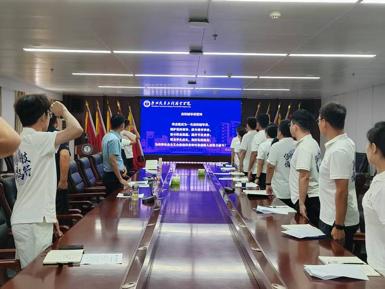 仪式最后,在学生处张壮老师的带领下,全体新入职辅导员庄严宣誓《高校辅导员誓词》。