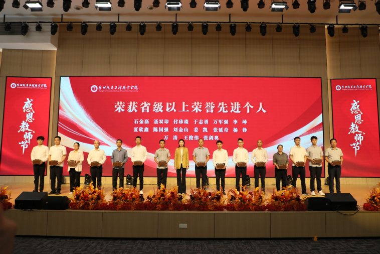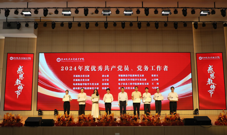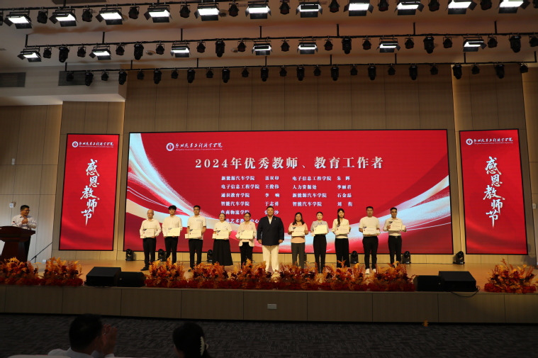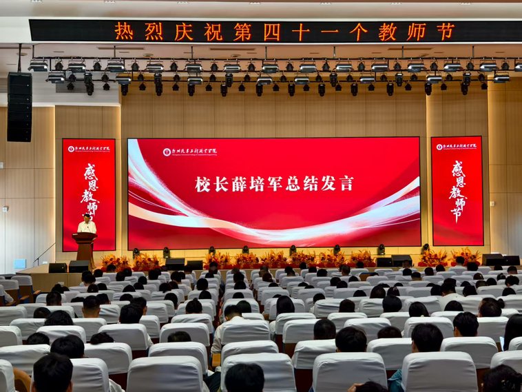 校长薛培军在总结讲话中向受表彰的集体和个人表示祝贺,并向全体教职工致以节日问候与衷心感谢。他强调,要深刻把握“以教育家精神铸魂强师,谱写教育强国建设华章”的主题内涵,号召全体教师以赤诚之心扎根讲台、以深厚学识启迪学生、以创新姿态回应时代,成为塑造生命、传承技艺、推动进步的“筑梦人”。结合职业教育类型特色,他提出三点希望:一是希望大家以“大先生”立志,做信念坚定的表率。要持续强化理论武装,坚守“为党育人、为国育才”初心使命,以高尚师德师风浸润学生,争做“四有”好老师和“四个引路人”,着力培养德技并修、全面发展的高素质人才;二是希望大家以“工匠师”对标,做技术技能精湛的表率。要紧跟产业升级与技术变革趋势,潜心钻研、锤炼本领,努力成为精通专业、擅长实践、胜任竞赛的骨干教师,以精湛技艺为学生奠定坚实的职业发展基础;三是希望大家以“开拓者”为先,做改革创新的表率。要积极投身“三教”改革、专业优化与校企协同育人,促进竞赛资源教学化、科研成果课堂化,持续激发教学活力,全面提升学校内涵实力与服务区域发展能力。他号召全体教职工以先进为榜样,将全部心血投入职业教育,共同为推动学校高质量发展、为建设教育强国、为实现中华民族伟大复兴作出新的贡献!
