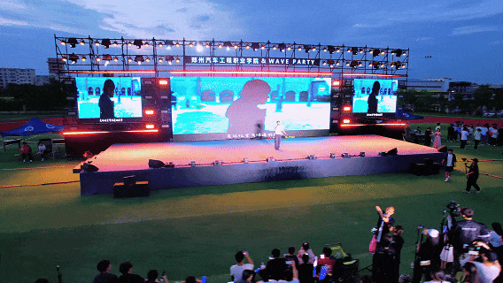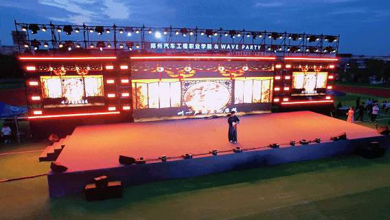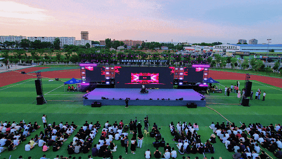 活动现场,璀璨的灯光如星河倾泻,跃动的音符与未来感十足的舞台交相辉映,勾勒出一幅科技与青春融合的画卷,展现了学校创新、活力、开放的文化氛围。