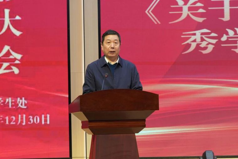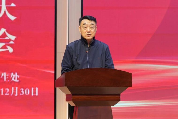 薛培军作总结讲话,他首先向受表彰的集体和个人表示热烈祝贺,并对全体师生的辛勤耕耘与无私奉献给予充分肯定。面向未来,他向全校师生提出三点希望:一是希望获奖同学珍惜荣誉、不忘初心,把表彰转化为持续前行的动力,在现有成绩基础上不断超越;二是希望全体同学以先进为榜样,见贤思齐、奋发向上,形成崇尚先进、学习先进、争当先进的良好氛围;三是希望全校师生凝心聚力、携手共进,以实干为笔、以奋斗为墨,共同书写学校高质量发展的崭新篇章。