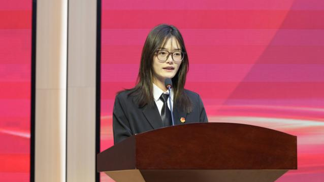 颁奖仪式后,优秀学生代表、新能源汽车学院范潆予同学发言。她结合个人成长经历,表达了对学校悉心培养和师长亲切教诲的感激之情,并表示将以此次表彰为新的起点,更加严格要求自己,再接再厉、不断进取,努力成长为堪当民族复兴大任的时代新人。