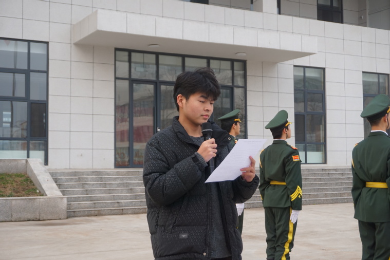 电子信息工程学院云计算技术应用专业学生陈润龙作为学生干部代表发言,倡议同学们把国旗下的感动与决心落到实处。他号召同学们在实训中锤炼技能,在课堂上夯实基础,在集体中团结奉献,努力成长为技术扎实、品德端正的时代新人。