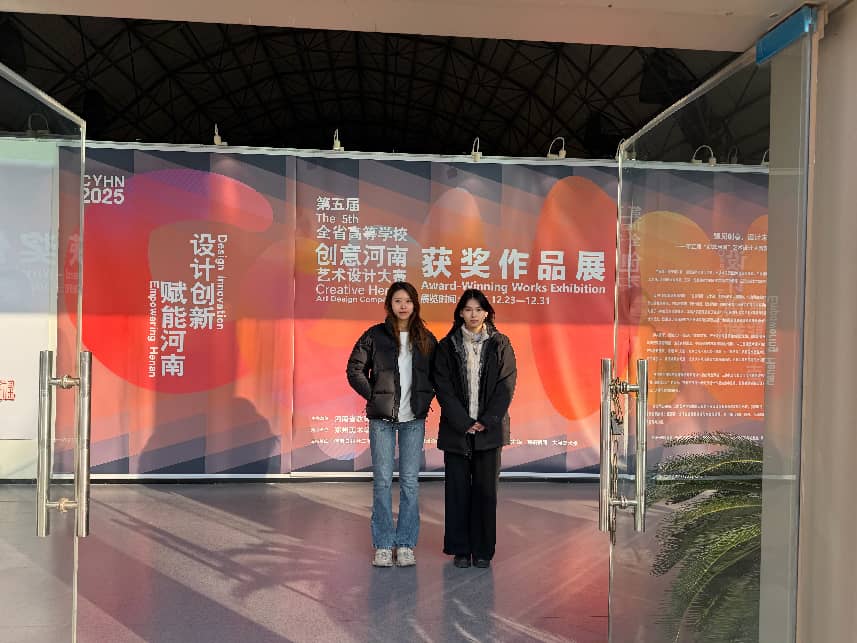 为提升教师专业素养,汲取前沿设计理念与教学灵感,2025年12月27日,公共艺术教育中心教师亓艺璇、孙嘉翼前往郑州美术学院,参观“第五届全省高等学校‘创意河南’艺术设计大赛获奖作品展”。