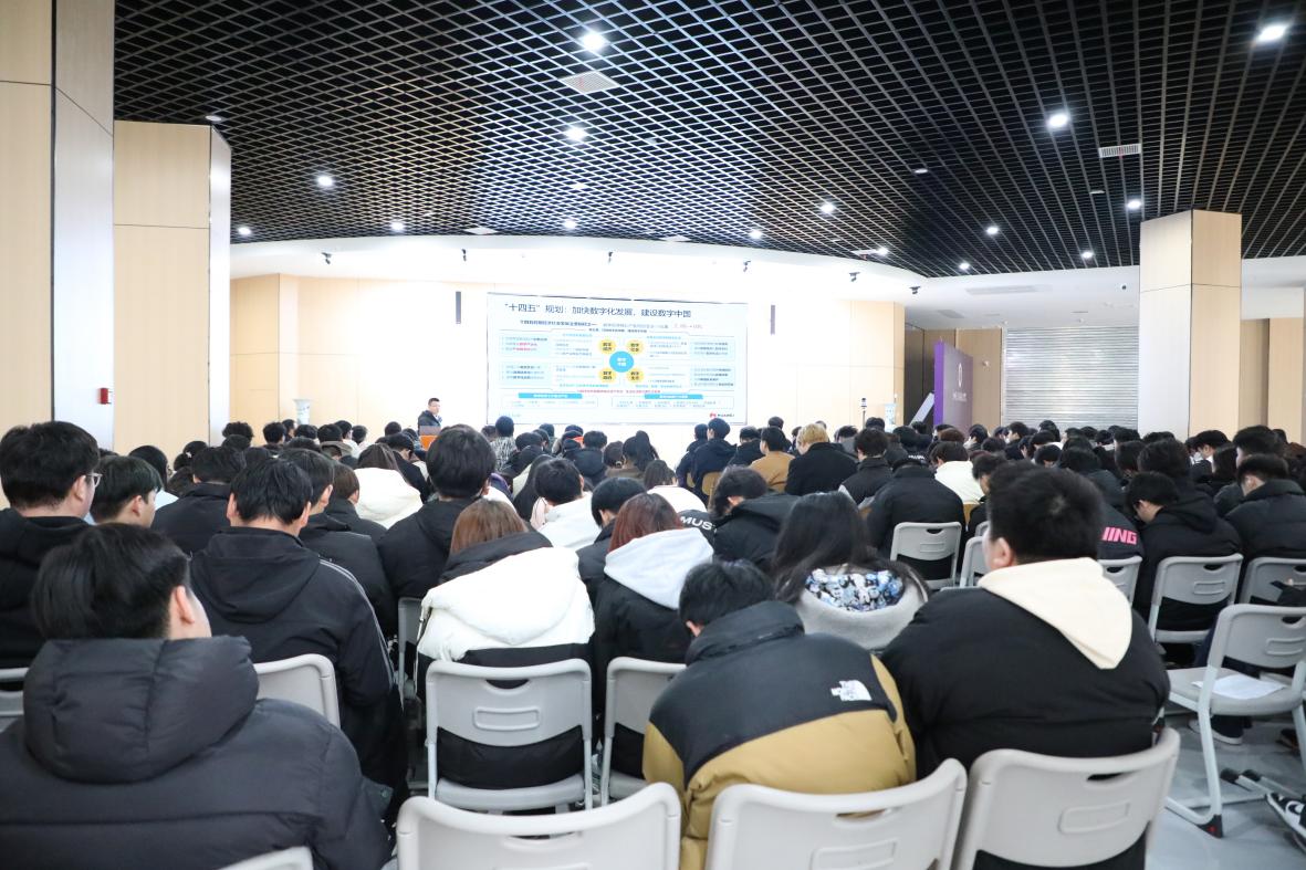 汪贻总经理以“ICT新青年挑战已来”为题,围绕数字化转型给行业企业带来的巨大变革,ICT行业人才需求,以及青年学子该如何度势、顺势、乘势作专题报告。行业数据详实、实例引证生动,收获现场热烈回应与积极互动。