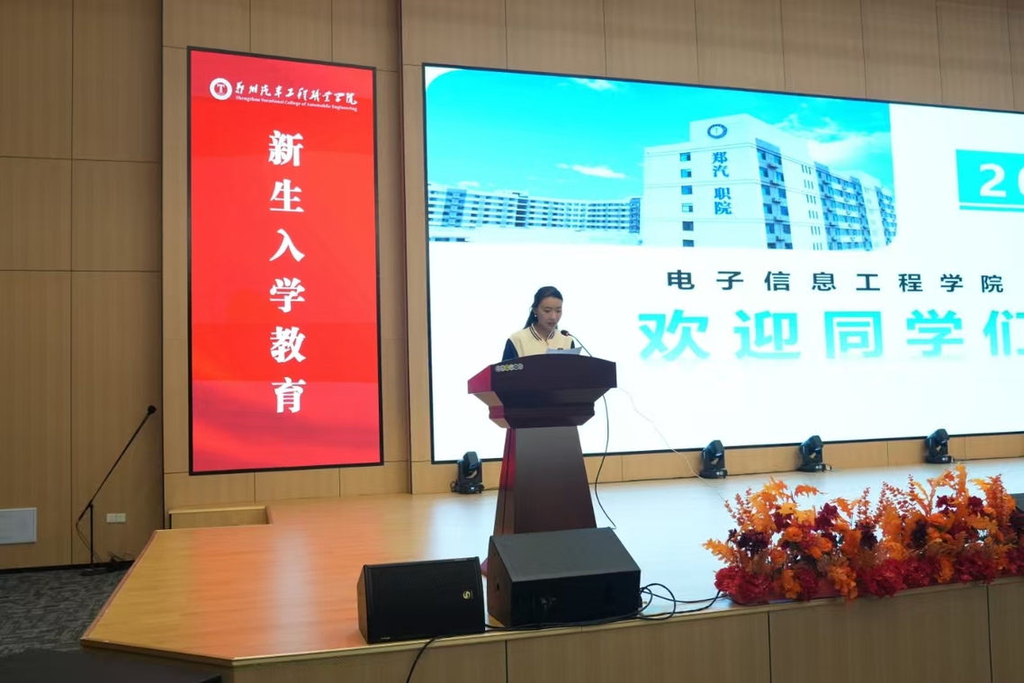 9月11日,电子信息工程学院组织2025级新生教育大会。25级全体新生齐聚A3学术交流中心三层报告厅,24级学生代表一同参会。25级辅导员聂维琦老师主持大会。