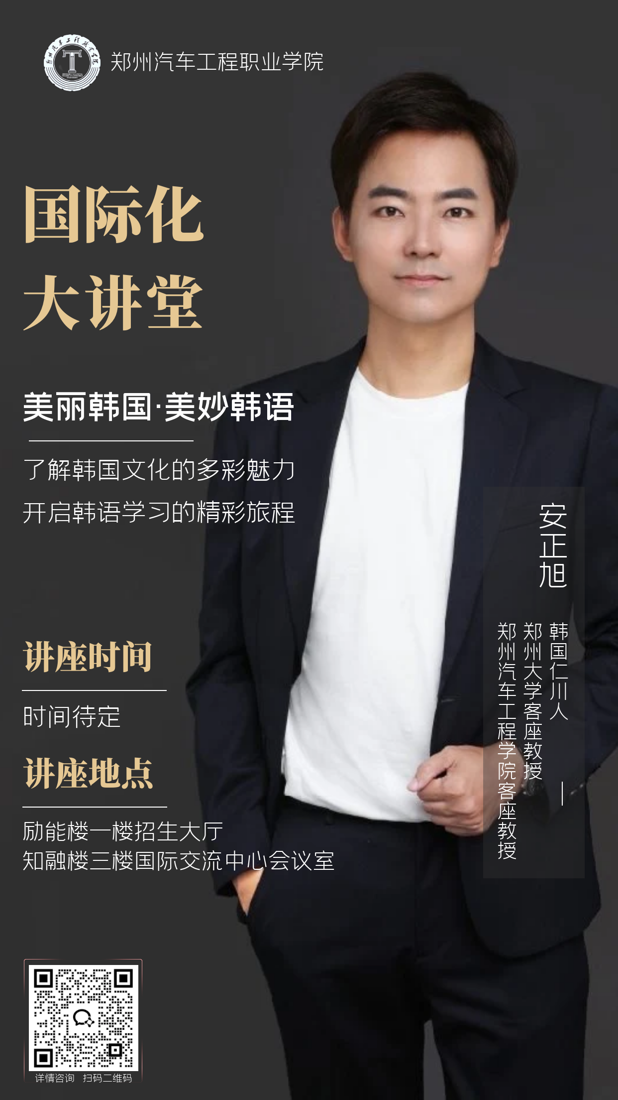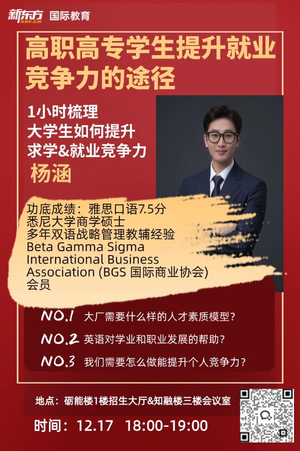 请有意参加讲座的师生通过扫描下方二维码了解详情,也可与辅导员联系参与报名。培训学院将竭诚为师生提供优质的服务与保障,期待大家的积极参与与支持!