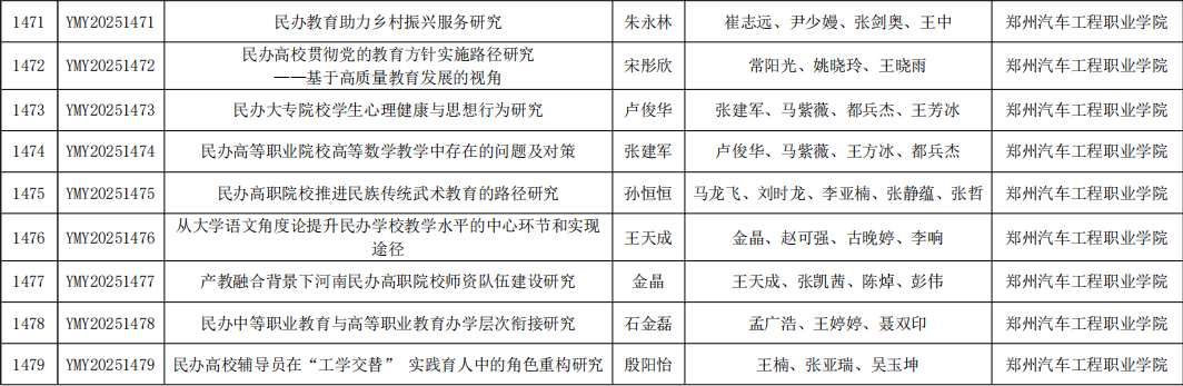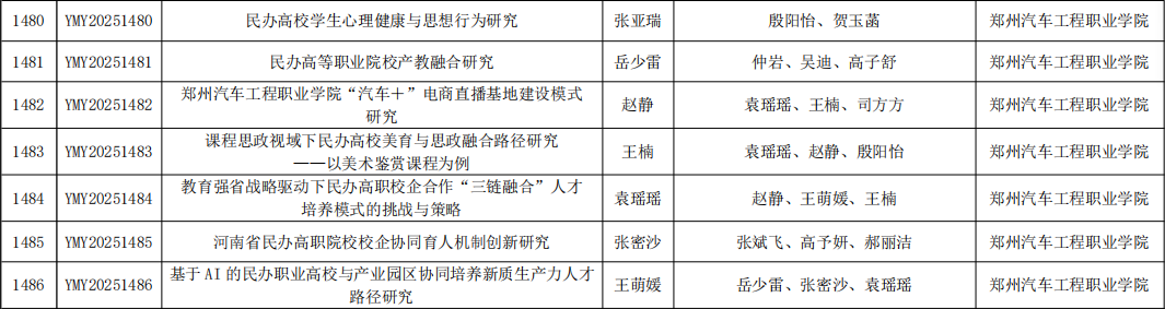 【喜报】在教务处的精心指导下,在各二级学院的通力配合下,我校参与申报的《2025年度河南省民办教育协会调研课题》申报16项,立项16项。本项课题的立项,打破了我校在河南省民办教育协会调研课题申报零的突破。