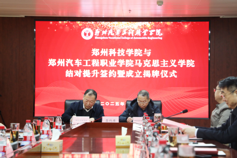 为深入贯彻落实习近平总书记关于“大思政课”的重要指示批示,切实提升我校“大思政课”建设水平和马克思主义学院标准化建设水平,2025年1月9日上午,郑州科技学院马克思主义学院与开云在线登录app入口马克思主义学院在701会议室举行结对提升签约暨成立揭牌仪式。