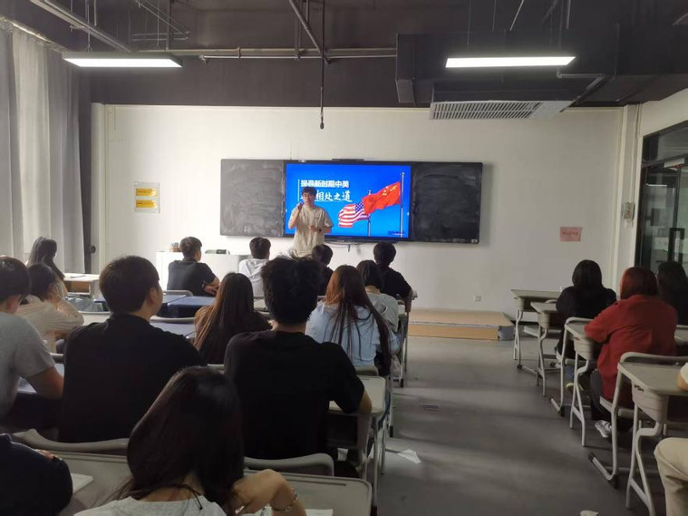 殷盛杰当堂讲授的内容是中美关系。他说,当前特朗普政府对中国实行极限打压,以征145%的关税限制中国产品出口美国,意图逼中国屈服,或事实上切断中美经济联系。这一局势,对中国经济产生较大影响。如何减小美国关税大棒对我国经济大局的影响,化解被动局面,需要探索。接着他回顾百年中美关系历史,呈曲折发展状态,并说明无论美国如何对待我国,我们都能有力应对。今天的中国,更有实力应对美国挑衅。我们的态度和政策是,不惹事,不怕事。认真研究,科学应对。