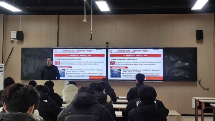 课堂上,张瑞春以“遵守网络行为规范,争做互联网上的合格党员”为题,从理论、专业、案例等方面,带领师生学习习近平总书记关于网络安全提出的新思想新观点新论断,深入学习《中国共产党党员网络行为规定》和新修订的《中国共产党纪律处分条例》对党员在网络空间不当言行的有关处分规定,并分别以“切实增强责任担当,以身作则守好网络关”角度,阐述提升安全防范意识、把牢网络“思想关”,加强网络知识学习、把握网络安全“技术关”,强化网络行为监督,把牢网络安全“行动关”;从“带头践行做好宣传,不断弘扬正能量唱响主旋律”角度,阐述维护网络安全就是维护国家安全、社会稳定和人民福祉,党员应在宣传网络安全知识方面发挥关键作用,带头遵守法律法规、自觉维护网络空间的纯净;从“主动作为强化监督,持续营造晴朗网络环境”角度,阐述要遵规守纪弘扬主旋律,强化安全意识锤炼硬作风、坚定政治定力敢于善于斗争。