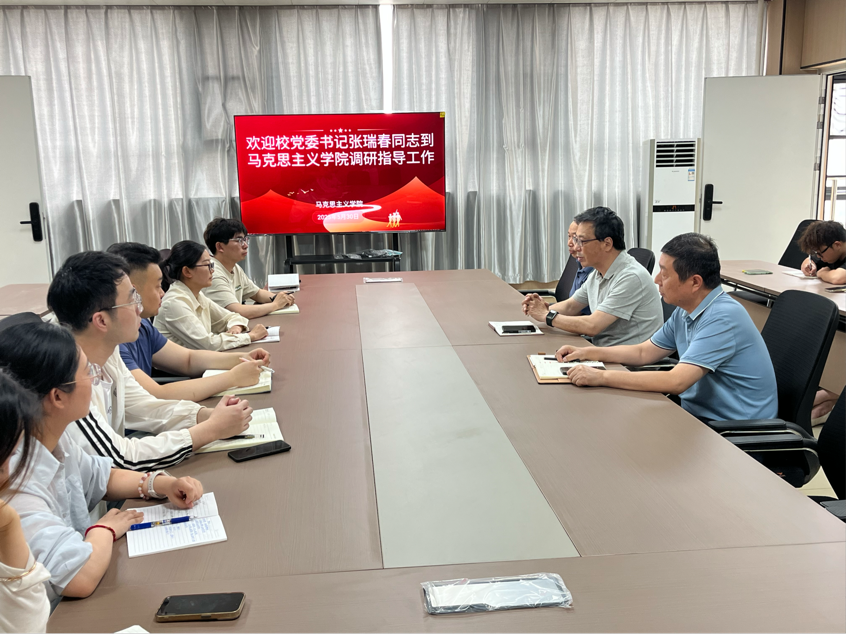 2025年5月30日下午,校党委委书记张瑞春、党委办公室主任臧俊炎一行到马克思主义学院调研指导工作。马克思主义学院全体专兼职教师参加会议,马克思主义学院院长郑彦离主持调研会。
