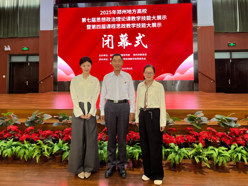 2025年6月13日下午,由中共郑州市委宣传部、郑州市教育局主办,郑州地方高校思想政治理论课教学指导委员会承办的郑州地方高校第七届思想政治理论课教学技能大赛暨第四届课程思政教学比赛降下帷幕。本次大赛分为“思想政治理论课教学技能大赛”和“课程思政教学比赛”两大赛道,旨在全面贯彻落实习近平总书记对学校思政课作出的重要指示精神,引导广大思政课和专业课教师积极探索教学方式方法,把思政课讲深、讲透、讲活,深挖思政元素,使得各类课程与思政课同向同行,助力构建大思政育人格局。在为期三天的激烈角逐中,来自郑州各地方高校的百余名优秀教师各展所长。最终,我校马克思主义学院的宋彤欣老师和姚晓玲老师分别斩获思政课程教学技能大赛的一等奖和二等奖。