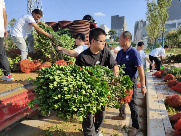 学校机关和三个学院的教工到兰州路校园内段西侧进行栽种冬青劳动。有的挥锨铲土,有的抱冬青放盆,有的抬栽好冬青的盆到摆放的道上。大家配合默契,衔接紧密,齐心协力地为学院增添新绿。此次栽植冬青共100盆,由于劳动强度大,加上阳光强烈,每个老师都汗流浃背。完成任务后看着整齐的绿植,老师们现出欣慰的笑容。