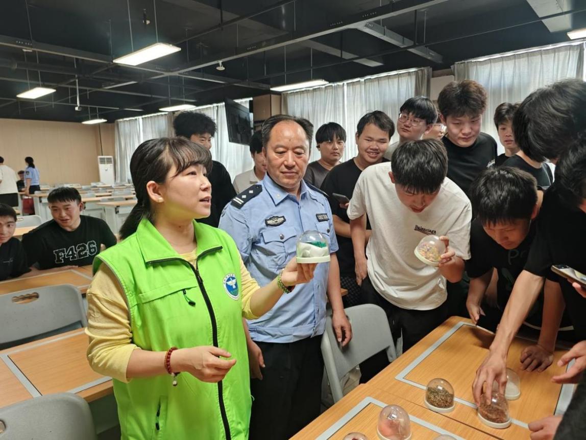 之后,蒋利莉围绕禁毒知识进行宣讲。她介绍常见毒品的种类,并讲解麻精药品滥用及其危害,通过展示毒品样本、剖析吸毒危害案例,让同学们直观认识到毒品对个人、家庭和社会造成的严重危害,她呼吁同学们要树立正确价值观,坚决对毒品说“不”,并积极向身边人宣传禁毒知识。