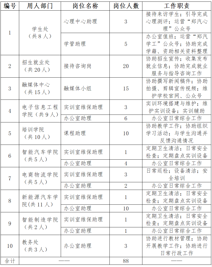 为贯彻落实国家资助政策,帮助家庭经济困难学生顺利完成学业,培养学生自立自强精神,提升实践能力,现面向全体在校生开展2024-2025学年第二学期勤工助学岗位招聘工作。本次招聘提供多个勤工助学岗位,请同学们结合自身优势及课余时间,根据部门所需进行申报。具体事项通知如下: