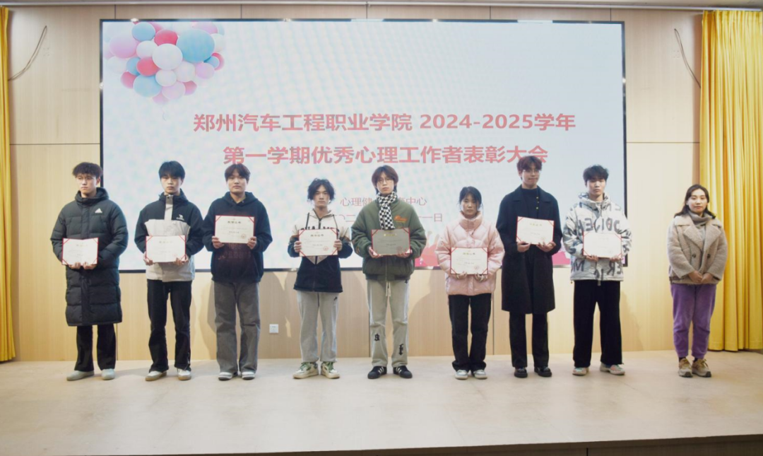 2024年12月11日晚,2024-2025学年第一学期“优秀心理工作者”表彰大会在砺能楼招办大厅顺利召开。出席的嘉宾有学生处唐晓处长、心理健康教育中心负责人袁旭辉老师,以及来自新能源与智能汽车学院、电子信息工程学院和电商物流学院的心理专干张亚瑞老师、王潇雅老师和王楠老师。此外,全体辅导员和学生代表也参加了此次大会。