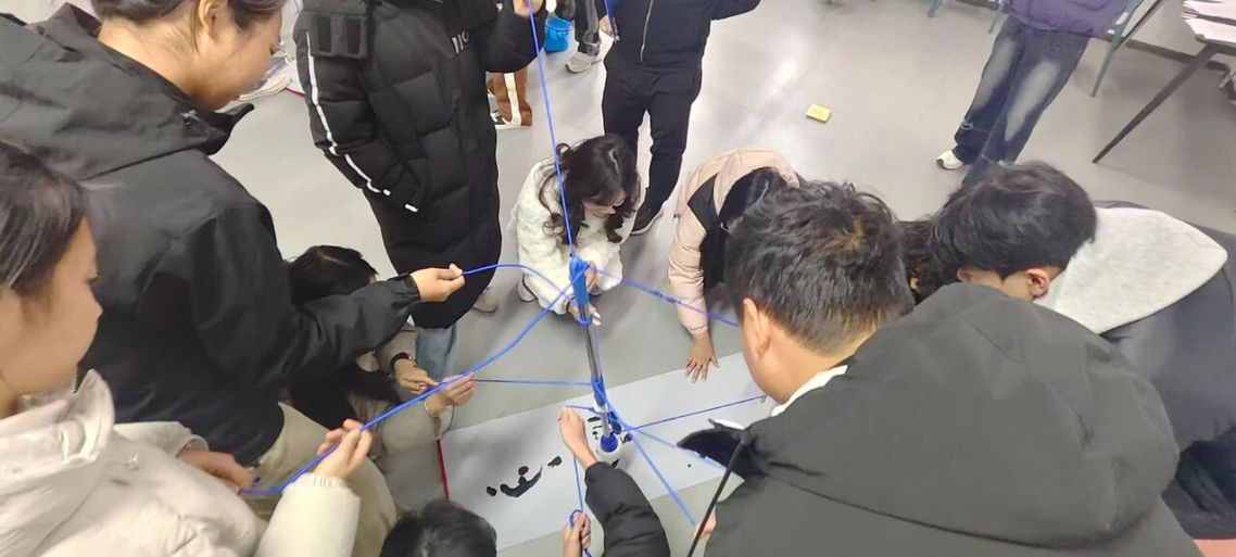 12月2日14:00,心理健康教育中心主办的“心晴守护”首届心理素质拓展带领者训练营第二期培训在知经楼202团体心理辅导室顺利开展。本期以“带领技能进阶”为主题,袁旭辉老师全程指导,30名学员通过“神笔马良”“齐眉棍”两大经典项目的实战演练,在协作中精进带领能力,为成为校园心理领航员蓄力。