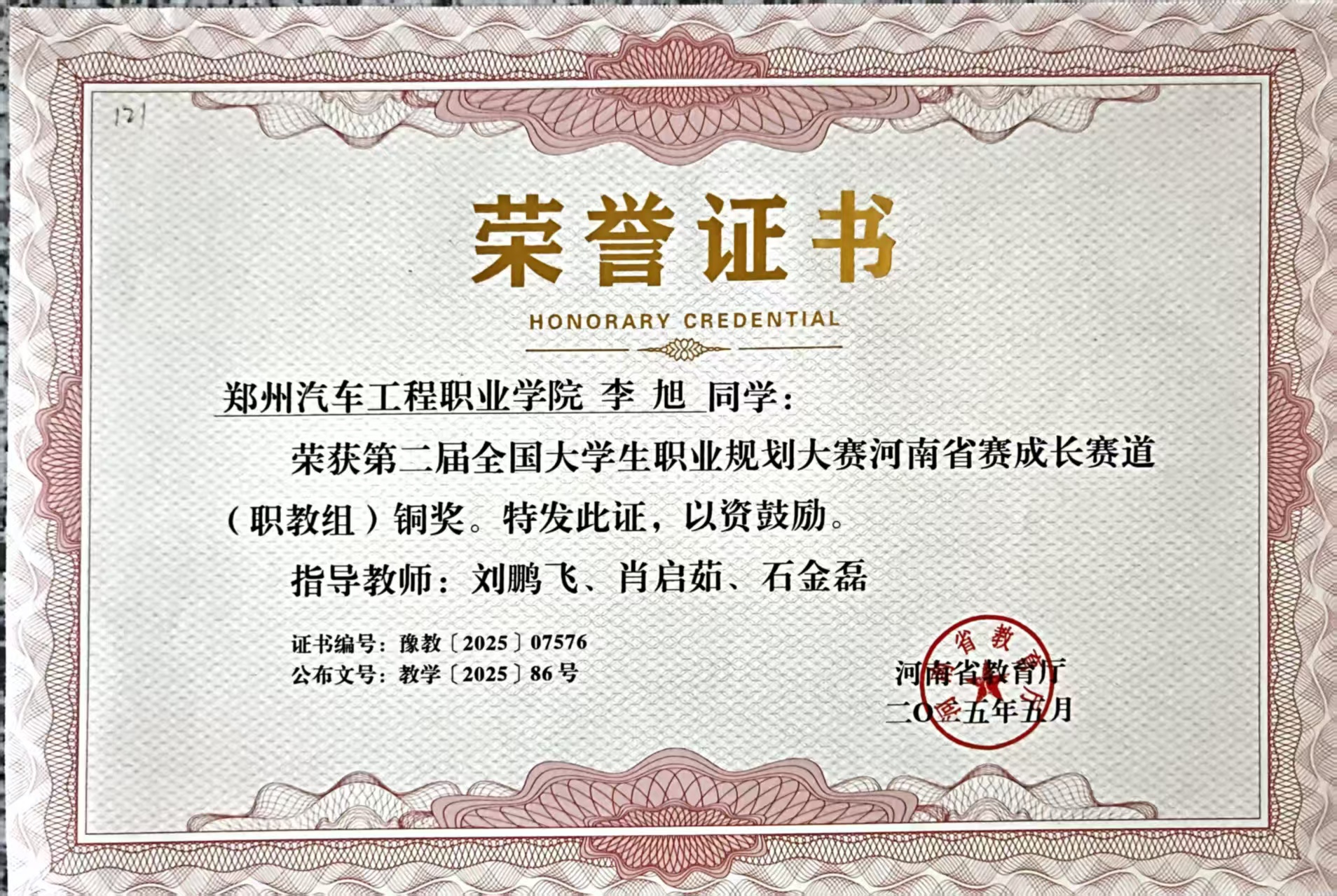 自踏入大学校园以来,他始终以“少年不惧岁月长,彼方尚有荣光在”为人生信条,在思想上紧跟时代步伐,在学业上锚定专业目标,在实践中践行青年担当。从课堂内的深耕细研,到技能赛场的精益求精,再到宿舍建设中的示范引领,他以扎实行动勾勒青春轮廓,用亮眼成绩诠释奋斗意义,为新时代高职学子树立了良好榜样。