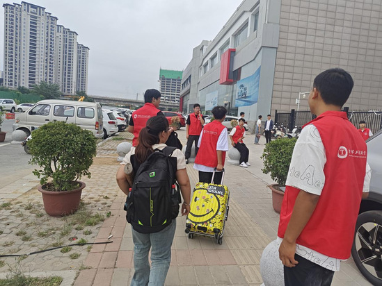行李转运组:南门北门、D09、D10宿舍楼随处可见的志愿者不辞辛苦,热情洋溢,帮助新生将行李安全运送到宿舍,减轻新生负担。