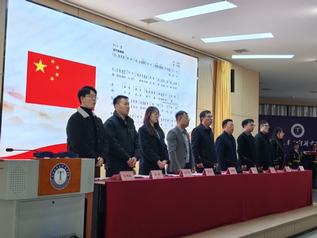 仪式在庄严的国歌声中拉开序幕,全体与会人员神情严肃、精神饱满,以嘹亮的声音共唱国歌。