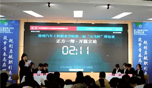 为进一步丰富校园文化生活,培养和提升同学们的逻辑思维能力与语言表达能力,展现郑汽学子的智慧和风采,我校于12月19日下午在B1报告厅举行校园首届辩论赛决赛。