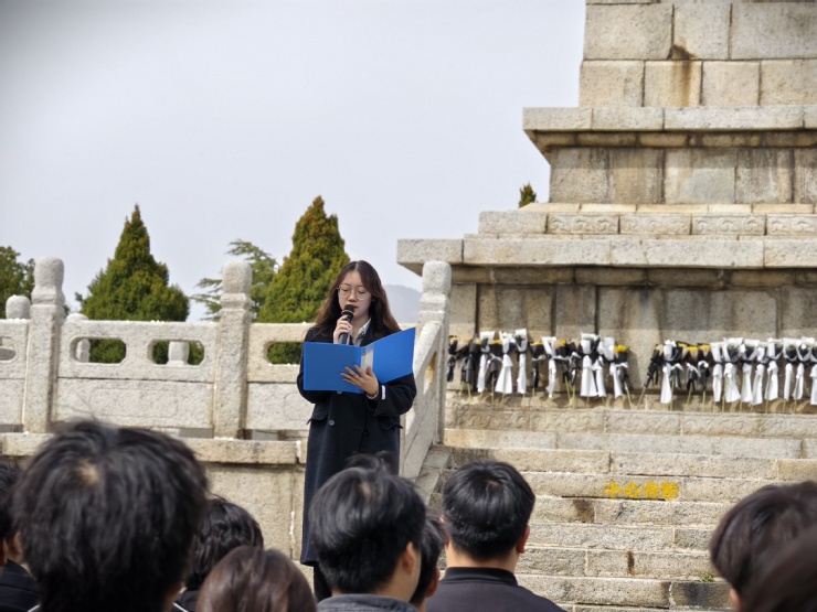 校团委副书记方宇辰作讲话,皮定钧将军等革命先辈用鲜血铸就的中原突围精神,是我们宝贵的精神财富。殷切寄语青年学子,要从英烈事迹中汲取信仰力量,坚定理想信念,厚植家国情怀,在新时代新征程中勇挑重担。