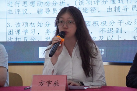 校团委副书记方宇辰现场解读了《积分入团》方案及发展团员工作全流程,号召广大入团积极分子珍惜难得的学习机会,认真听讲,深入思考,切实提升个人思想政治素养,听党话、跟党走,争做有理想、敢担当、能吃苦、肯奋斗的新时代好青年。