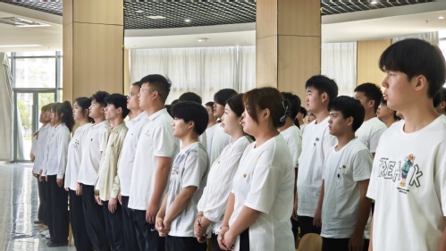 仪式在雄壮的国歌声中拉开帷幕,全体与会人员肃立齐唱国歌,嘹亮的歌声展现了新时代青年的昂扬斗志。