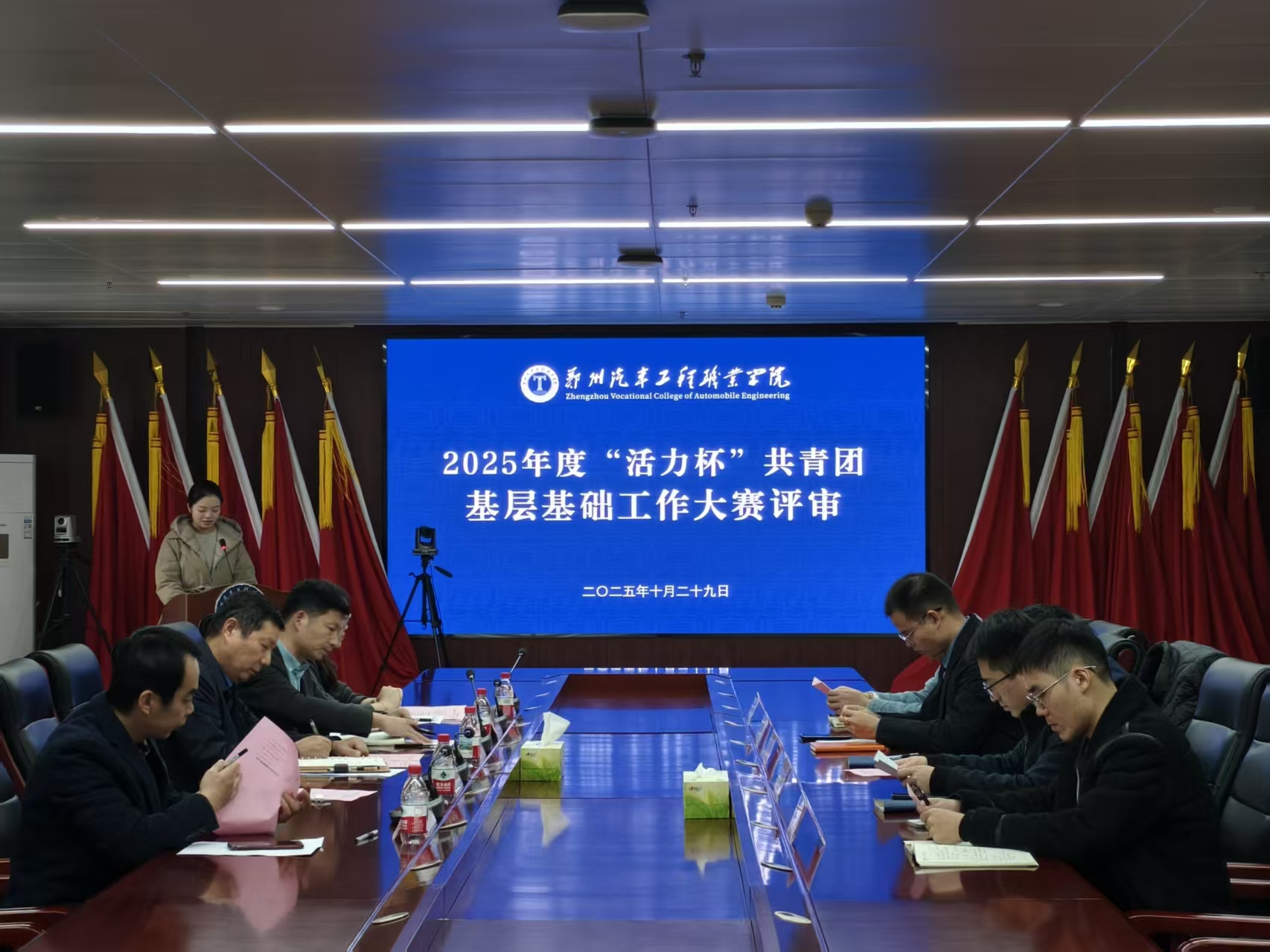 2025年10月29日下午,开云在线登录app入口2025年度“活力杯”共青团基层基础工作大赛评审会在行政楼701会议室成功举行。校长助理臧俊炎,党委宣传部副部长王羽西,学生处副处长、校团委书记陈磊,校团委副书记方宇辰,马克思主义学院教工党支部书记、院长助理张建军,各学院团总支书记和团的工作负责人,参赛项目代表齐聚一堂,共同检阅一年来学校共青团基层基础工作的丰硕成果,谋划未来共青团事业的高质量发展。