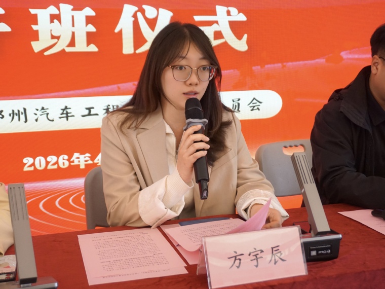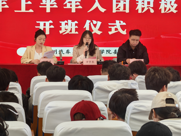开班仪式在庄严的国歌声中拉开帷幕。智能汽车学院彭龙飞同学代表全体入团积极分子发言。他表示,成为一名入团积极分子既是光荣,更是责任。他将与全体学员共同努力,坚定理想、勤学苦练、躬身实践,在思想、学习和行动上争做表率,以实际行动争取早日成为一名光荣的共青团员。