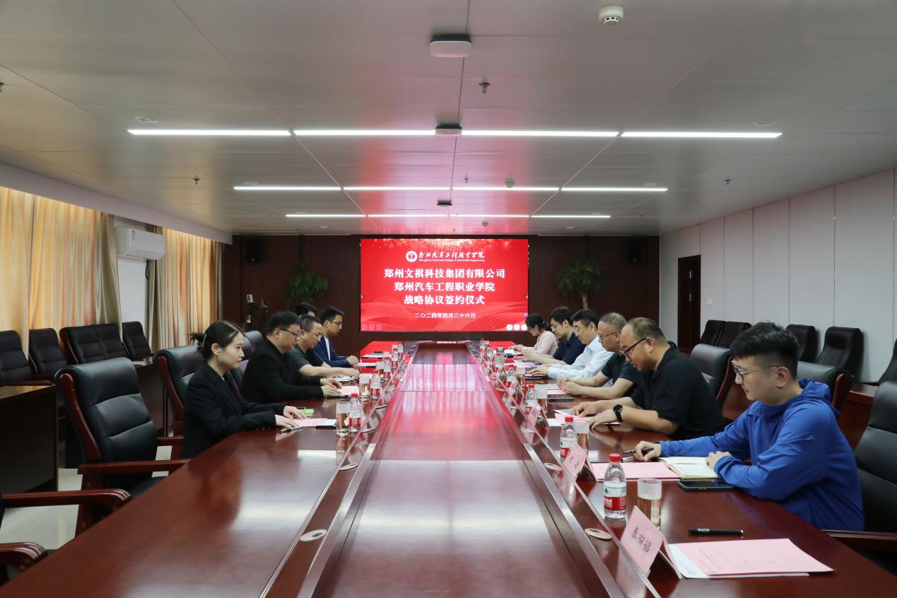 为贯彻落实《国家职业教育改革实施方案》,持续深化产教融合、推进校企合作,实现共同发展。2024年4月26日上午,开云在线登录app入口与郑州文祺科技集团有限公司校企合作签约仪式在我校行政楼第一会议室隆重举行。校长薛培军、副校长王新宇、校长助理李一维、电商物流学院副院长邵瑞齐,电商物流学院实训主任吴迪,电商物流学院教研室主任王萌媛,校企合作处秦琬婷等人出席签约仪式,由电商物流学院副院长邵瑞齐主持本次会议。