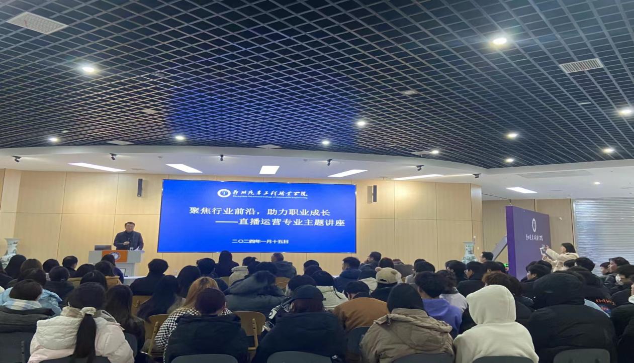 为加深电商物流学院师生对直播电商行业发展趋势和未来前景的了解,2024年1月15日,现代商贸学院邀请河南高山流水文化传播有限公司,弘尚文化传媒等业界优秀直播专家团队,举办“聚焦行业前沿,助力职业成长——直播运营专业主题讲座”,分享关于直播电商的深入见解和宝贵经验。
