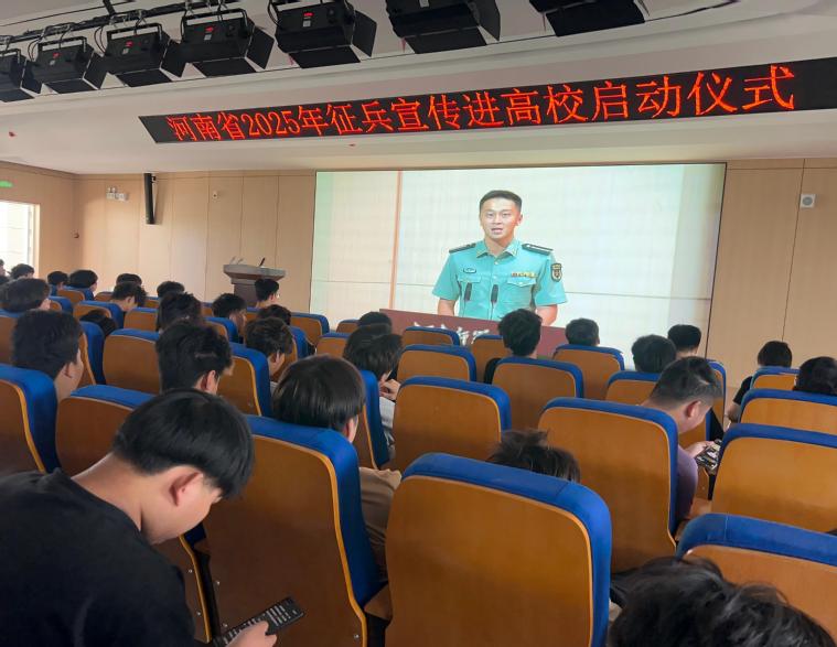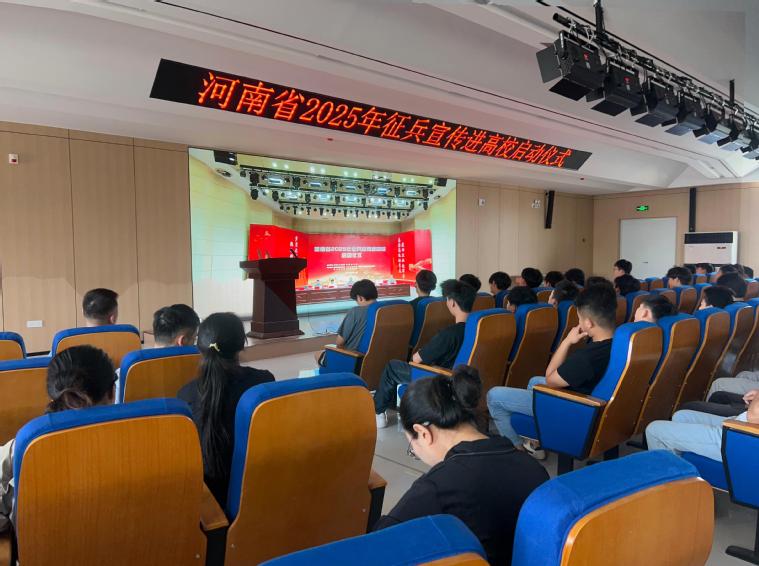 为深入贯彻习近平强军思想,落实国家征兵政策,激发我校大学生参军报国的热情,6月17日上午,我校武装部在A3二楼会议厅组织全校毕业生观看了“河南省2025年征兵宣传进高校启动仪式”的现场直播。