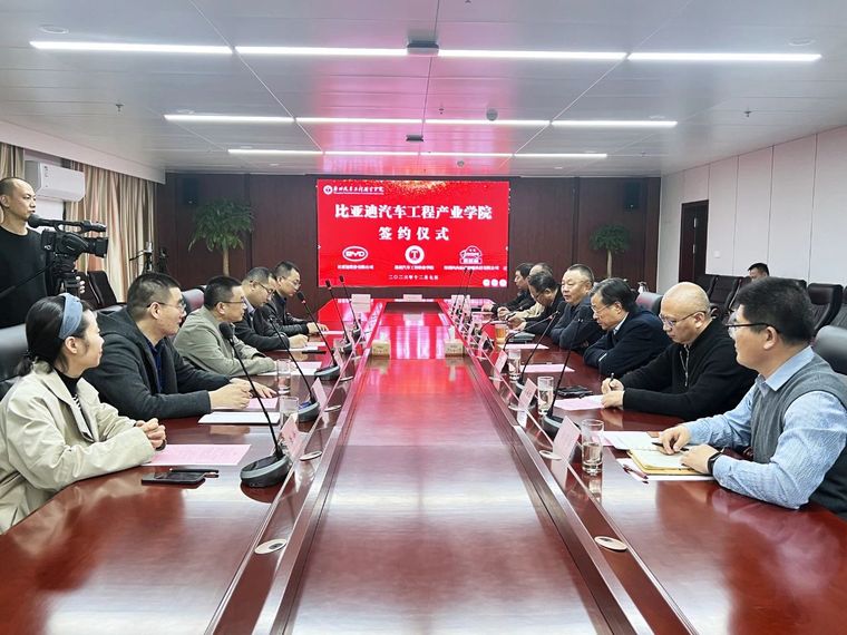 2023年12月7日下午,开云在线登录app入口、比亚迪股份有限公司、深圳风向标产教融科技有限公司共建比亚迪汽车工程产业学院正式签约。