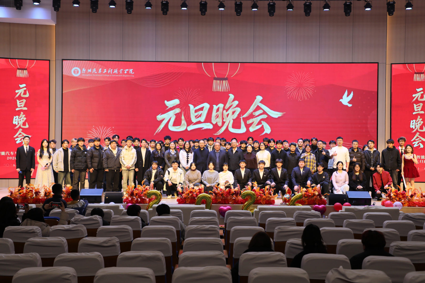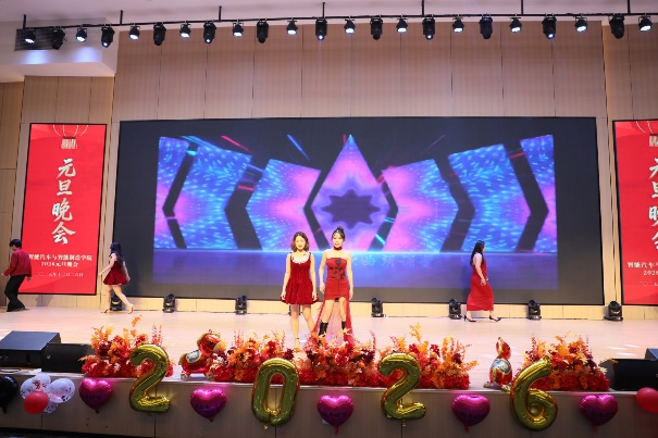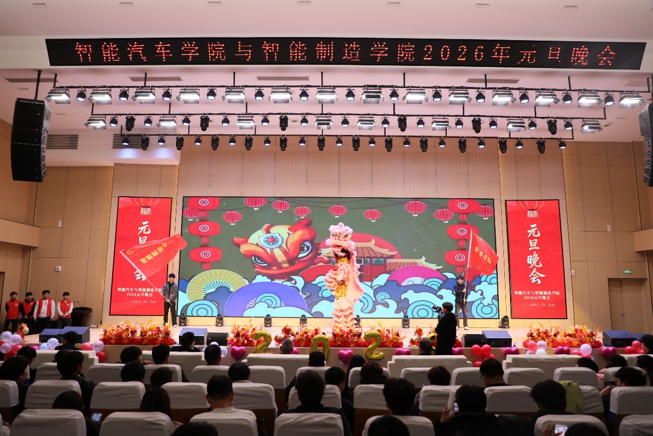 岁序更替,华章日新。12月29日晚,由智能汽车学院和智能制造学院联合举办的2026元旦晚会盛大启幕。校院两级领导与两院师生齐聚一堂,共赏视听盛宴,辞旧迎新,现场灯光璀璨、暖意融融,处处洋溢着青春的活力与节日的喜悦。