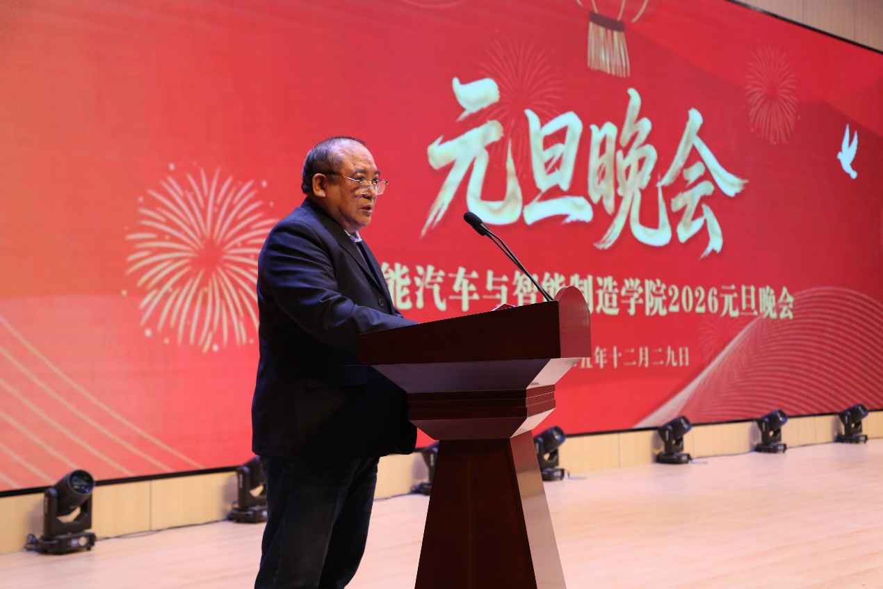 晚会伊始,智能汽车学院院长刘自然教授发表新年致辞。他代表学院向全体师生致以最诚挚的新年祝福,并回顾过去一年两院携手共进取得的丰硕成果,寄语师生在新的一年里继续凝心聚力、逐梦前行,以更加昂扬的姿态为学校的高质量发展贡献力量。